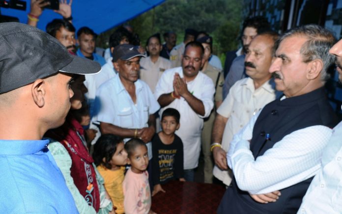 शिमला : मुख्यमंत्री ठाकुर सुखविन्द्र सिंह सुक्खू वीरवार को मण्डी जिले के नाचन विधानसभा क्षेत्र में आपदा प्रभावित परिवारों से मिले और उनका मनोबल बढ़ाया। उन्होंने आपदा प्रभावित बागा, स्यांज, पंगल्यूर गांव में हुए नुकसान का निरीक्षण किया। उन्होंने आपदा में मारे गए व्यक्तियों की आत्मा की शांति के लिए प्रार्थना की और प्रभावितों को राज्य सरकार की ओर से उन्हें हर संभव मदद का आश्वासन दिया।