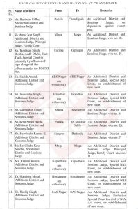 जालंधर (जतिंदर भारद्वाज) : पंजाब एवं हरियाणा हाईकोर्ट के आदेशों के अनुसार आज बड़े स्तर पर न्यायिक अधिकारियों के तबादले किए गए हैं।