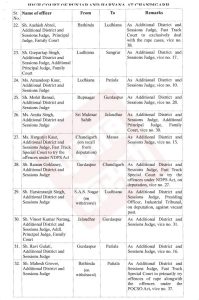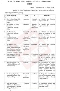 इस तबादला सूची में कुल 38 न्यायिक अधिकारियों का स्थानांतरण किया गया है। इसमें अतिरिक्त जिला एवं सत्र न्यायाधीश जसविंदर सिंह को जालंधर की नई स्थापित एनआरआई अदालत में नियुक्त किया गया है।