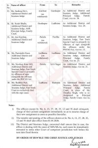 वहीं विनीत कुमार नारंग, जो पहले जालंधर में अतिरिक्त जिला एवं सत्र न्यायाधीश तथा फैमिली कोर्ट के प्रिंसिपल जज के रूप में कार्यरत थे, उन्हें अब गुरदासपुर भेजा गया है। इसके अलावा श्री मुक्तसर साहिब से अतिरिक्त जिला एवं सत्र न्यायाधीश अमिता सिंह को जालंधर में फैमिली कोर्ट के प्रिंसिपल जज के रूप में तैनात किया गया है।