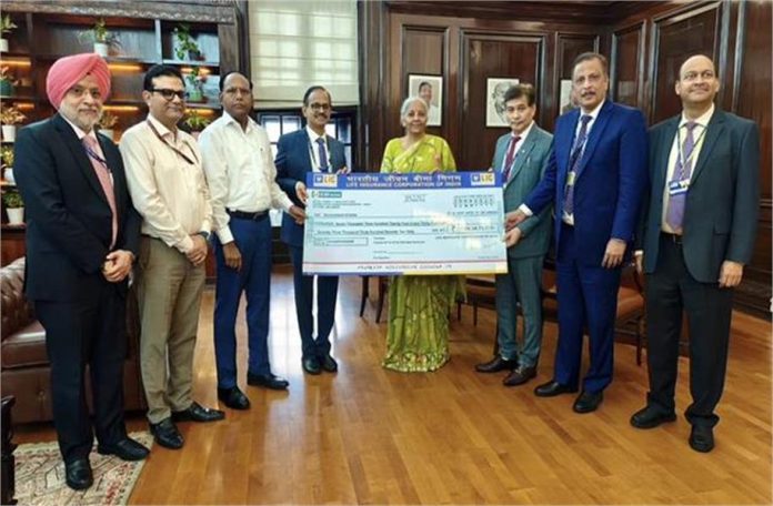 बिजनेस डेस्कः भारतीय जीवन बीमा निगम (LIC) ने वित्त वर्ष 2024-25 के लिए भारत सरकार को ₹7,324.34 करोड़ का डिविडेंड चेक सौंपा है। एलआईसी के चेयरमैन और सीईओ आर. दोरईस्वामी ने शुक्रवार (29 अगस्त) को केंद्रीय वित्त मंत्री निर्मला सीतारमण को यह चेक सौंपा। इस डिविडेंड को एलआईसी की 26 अगस्त को हुई वार्षिक आम बैठक (AGM) में शेयरधारकों ने मंजूरी दी थी।