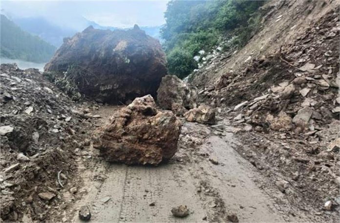 हिमाचल डेस्क। चंडीगढ़-मनाली हाईवे, जो पंडोह डैम के पास है फिर से बंद हो गया है। आज सुबह करीब 4:30 बजे, भारी भूस्खलन के कारण पहाड़ से विशाल चट्टानें सड़क पर आ गईं, जिससे यह महत्वपूर्ण मार्ग पूरी तरह से अवरुद्ध हो गया। इस घटना के कारण दोनों तरफ सैकड़ों गाड़ियां फंस गई हैं, जिससे यात्रियों को काफी परेशानियों का सामना करना पड़ रहा है।