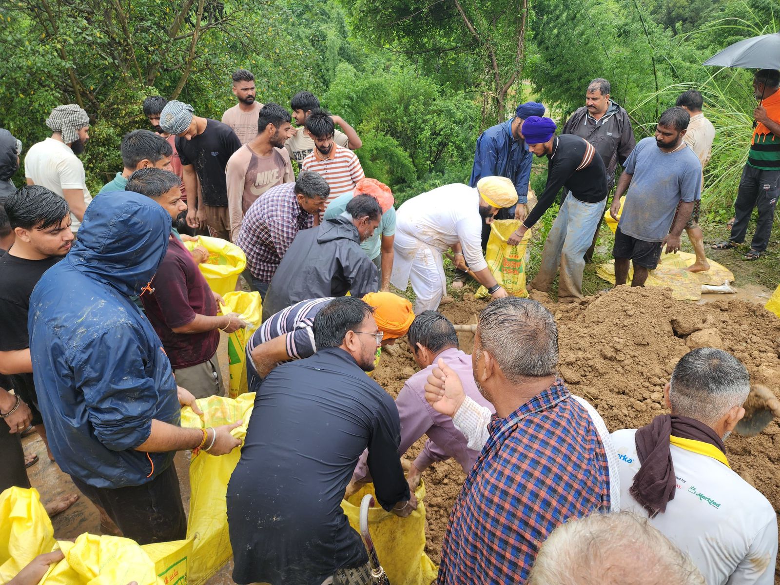 सोशल मीडिया पर यह जानकारी लोगों तक तेज़ी से पहुँची और आप वॉलंटियर, इलाका वासी और किला आनंदगढ़ साहिब कार सेवा वाले बाबा सतनाम सिंह अपने सेवादारों समेत इस स्थान पर पहुँचे और जे.सी.बी मशीनों, ट्रैक्टर-ट्रॉलियों के साथ हुए कटाव को भरना शुरू कर दिया। इसमें स हरजोत सिंह बैंस भी ट्रैक्टर-ट्रॉली से लाई जा रही मिट्टी, तिरपाल और बोरे भरकर इस कटाव को बंद करने में लगे नज़र आए।