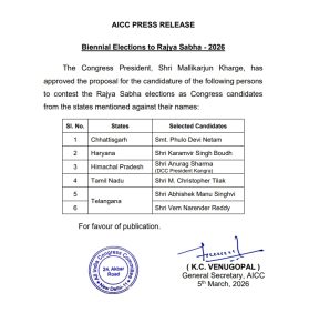 बता दें कि हरियाणा के साथ-साथ कांग्रेस ने कई राज्यों के राज्यसभा उम्मीदवारों के नाम घोषित किए हैं। यहां है पूरी लिस्ट-