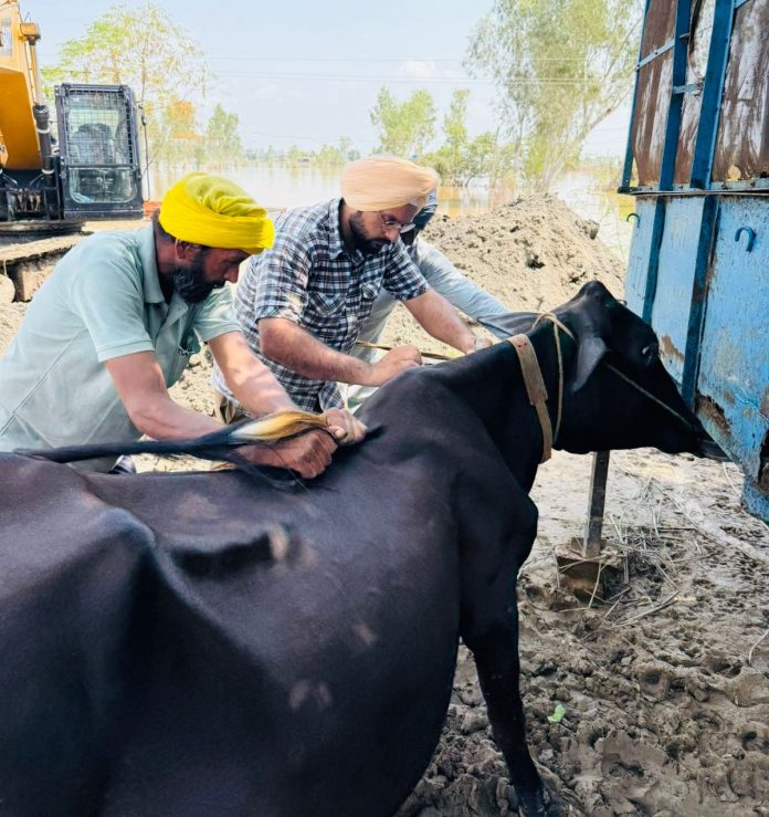 चंडीगढ़:पंजाब में आई बाढ़ के बाद कृषि अर्थव्यवस्था को बचाने के लिए प्रभावी और बड़े स्तर पर कार्रवाई करते हुए पंजाब सरकार ने मात्र एक सप्ताह में 1.75 लाख से अधिक पशुओं को गलघोटू बीमारी से बचाने हेतु सफलतापूर्वक टीकाकरण अभियान चलाया है। यह जानकारी साझा करते हुए पशुपालन, डेयरी विकास और मत्स्य पालन मंत्री श्री गुरमीत सिंह खुड्डियां ने बताया कि बाढ़ प्रभावित जिलों के 713 गांवों को कवर करते इस अभियान के पूर्ण होने से पशुओं को होने वाली संभावित बीमारियों से बचाने में बड़ी मदद मिलेगी।